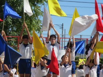 • 全校「笑顔かがやけ 大玉送り」、1・2年「アロハ♪玉入れ」、3・4年「徒競走」、「閉会式」の様子です。