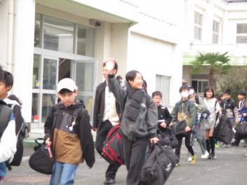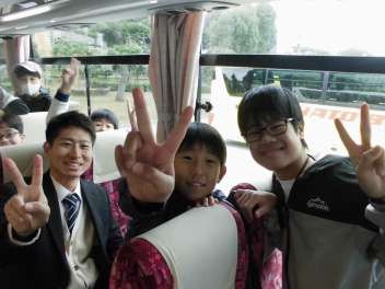 •  6年生が修学旅行から帰ってきました。途中交通渋滞もあり、予定より1時間ほど遅れての帰校となりましたが、バスから降りた子供たちは、「夢の国」の続きにいるようないで立ちで、笑顔!笑顔!笑顔!