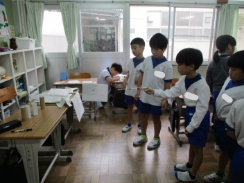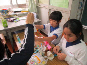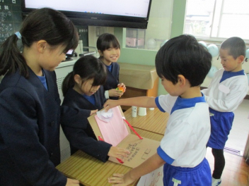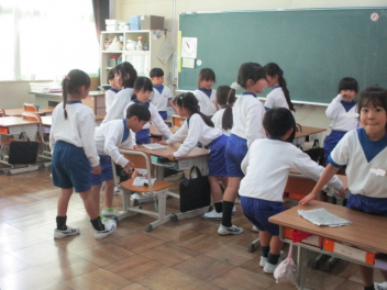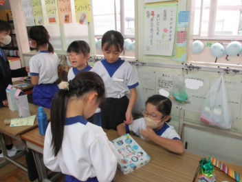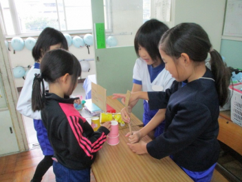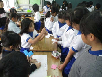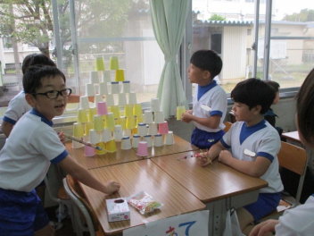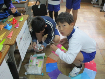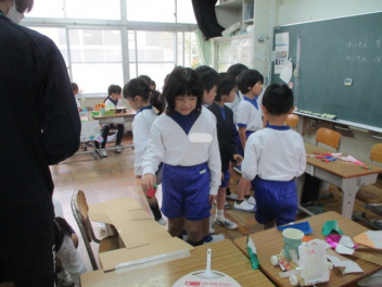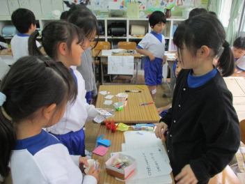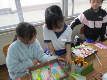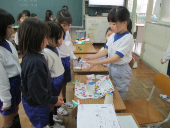 •  2年生が生活科で「おもちゃひろば」を開きました。お客さんは1年生です。この日のために、こつこつと準備を進めてきたので、2年生は1年生がどんな反応をしてくれるのか、わくわくしていました。