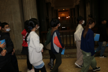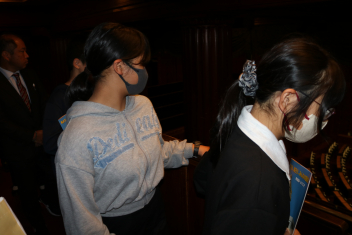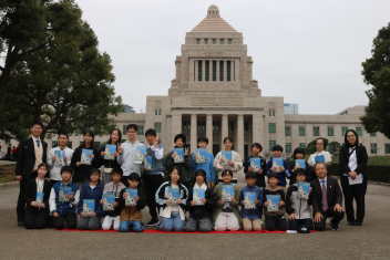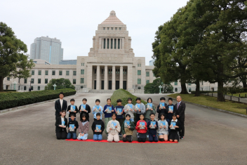 国会議事堂の見学では、建築物の美しさに魅了されていました。中の見学では、会議が行われる会場を見学し、感動していました。
