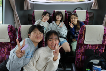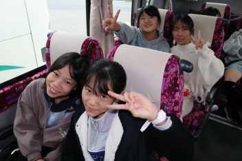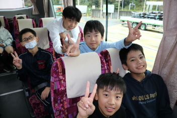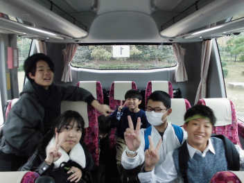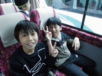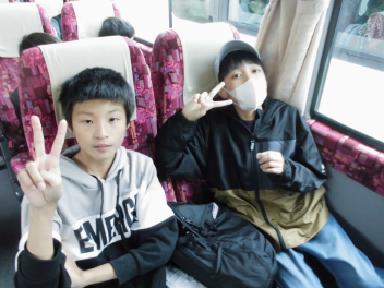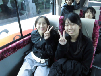 バスの中では、DVDを観ながら近くの席の子たちと楽しく談笑していました。