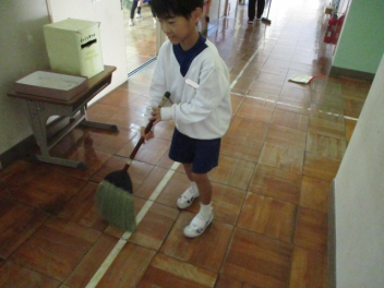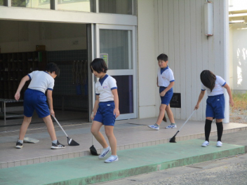 今日は感染症対策のため、学級清掃をしました。1年生も1学期に比べると掃除の仕方が上手になってきました。ほうきで集めらごみが、風で舞いそうになるとみんなで協力して壁を作っていました。何だか楽しそうです。