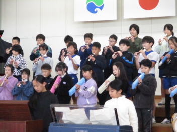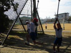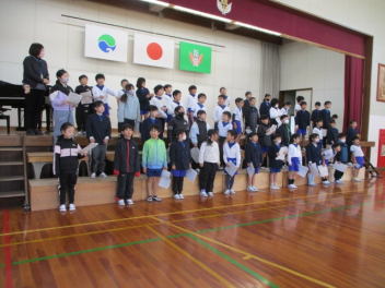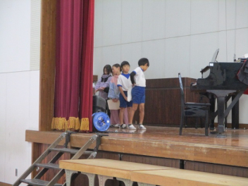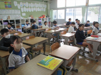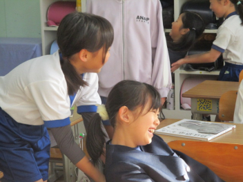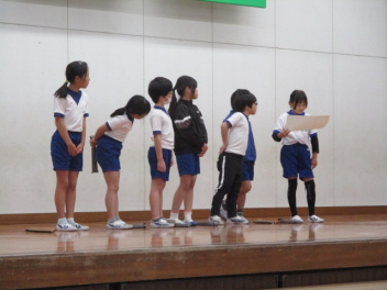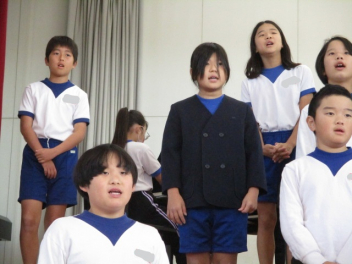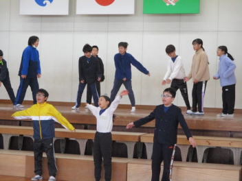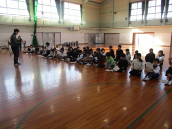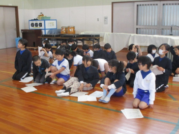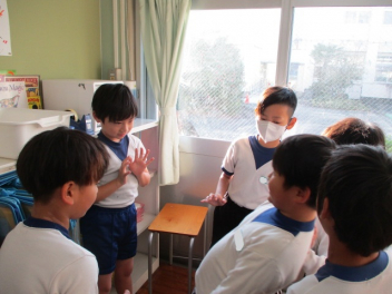 放送を聞いた後、3年生は「構成的グループエンカウンター」で倒れてくる相手を支える活動を体験しました。まずは座って、次に立って、最後はグループで。相手を信頼していないと倒れるのは勇気がいります。支える方は、「絶対受け止めるぞ」と相手を大切に思って手を差し出します。活動を振り返ると、子供たちから「相手を信頼するのって大切だね。」という言葉が出てきます。普段のコミュニケーションでも、相手を大切に思って受け止めたり、信頼して自分のことを表現したりできるとよいですね。