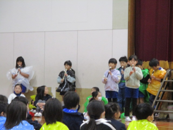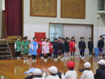 学習発表会のリハーサルが行われました。本番通りに通して行いました。