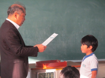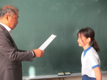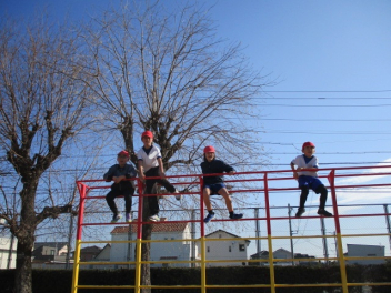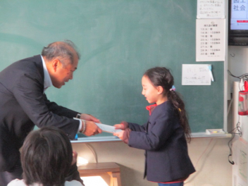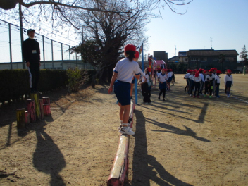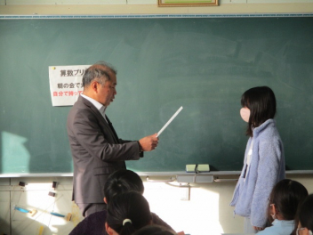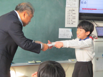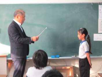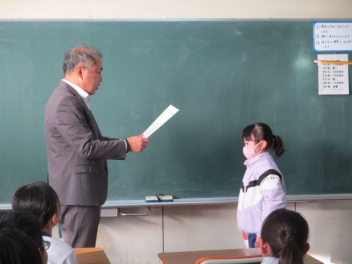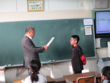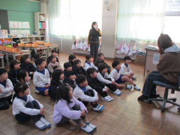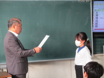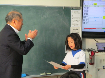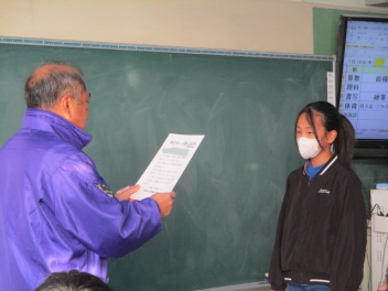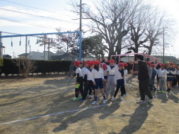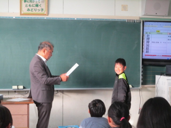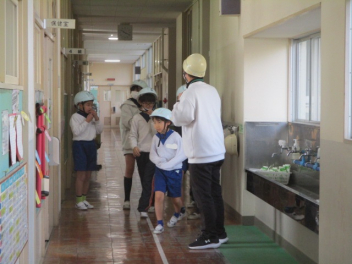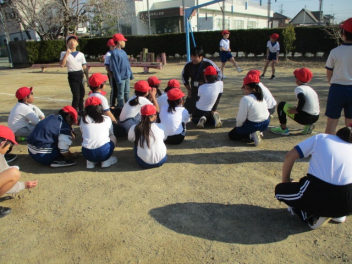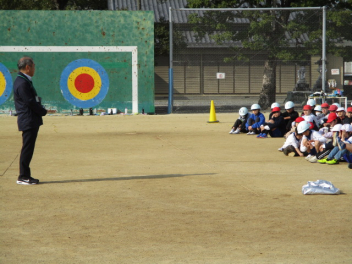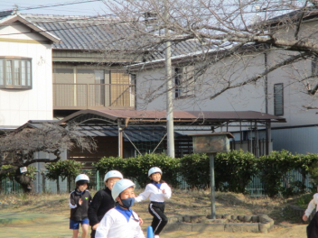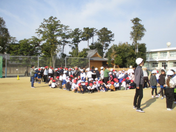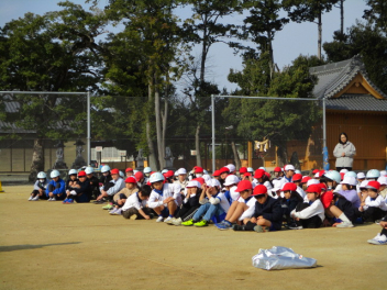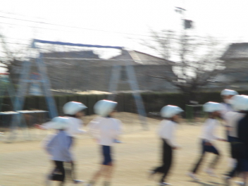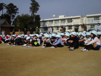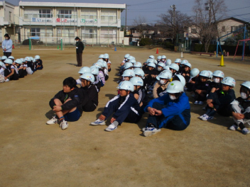 15分休みに抜き打ち避難訓練を行いました。訓練用の緊急地震速報が流れると、それぞれの場所で活動していたことをやめて、ダンゴムシのポーズをとって自分の頭を守ります。運動場にいた児童は建物から離れて真ん中に集まっています。2次避難の放送で、教室や廊下にいた児童も運動場に集まりました。「おはしも」を意識しています。