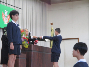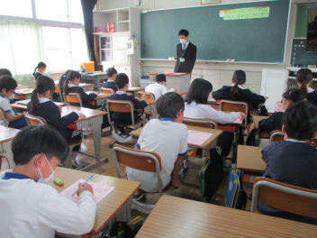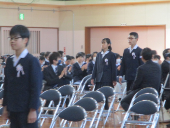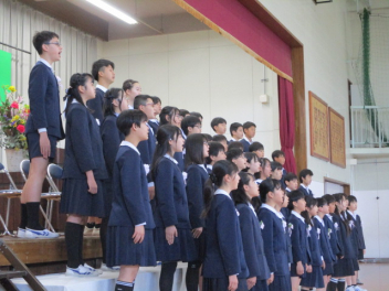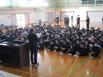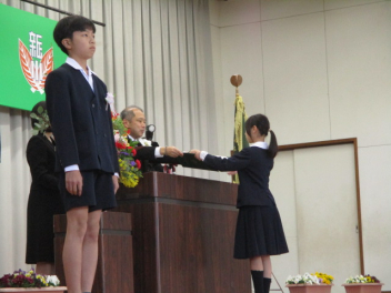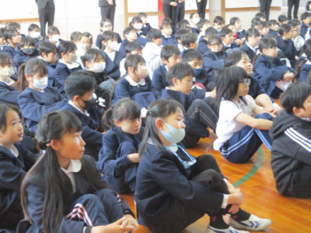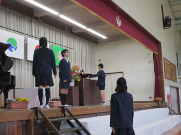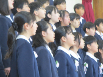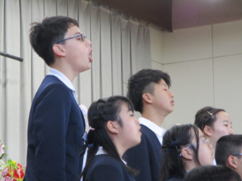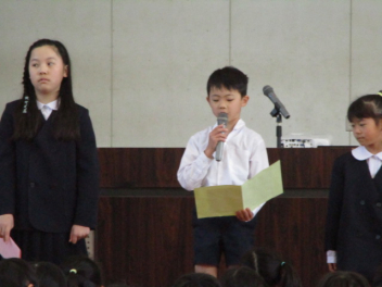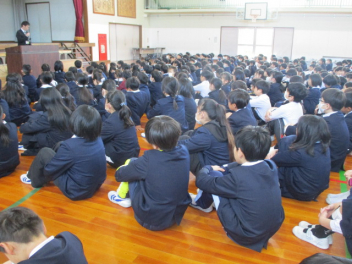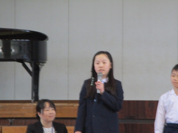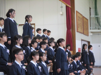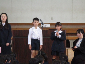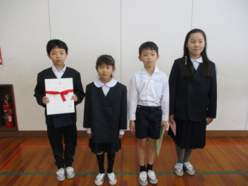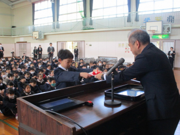まずは、5年生の代表児童が修了証をもらいました。その後、代表児童3人が、今年1年を振り返って頑張ったことを発表しました。それぞれに努力を積み重ねてきたことが伝わる、素晴らしい発表でした。
