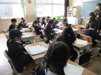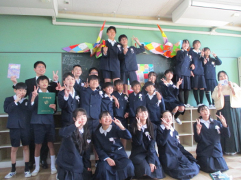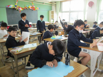 修了式後の教室の様子です。プリントや作品を返却したり、掃除をしたり。6年生は「友達からのメッセージをもらったよ」と見せてくれました。それぞれに学年最後の日を過ごしています。
