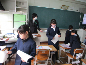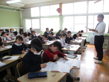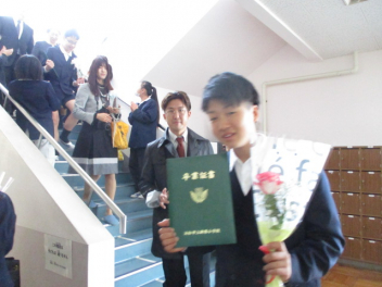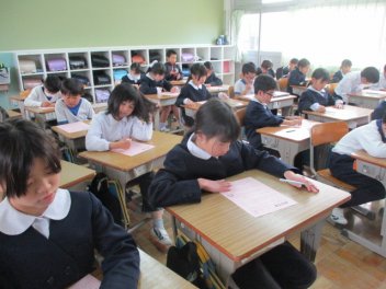 そして大切なのは、「キャリアカウンセリング」です。「のびゆく子」を渡しながら、一人一人の今年の取り組みを振り返り、頑張ったことを認め、来年度への勇気付けをします。「のびゆく子」をもらってうれしそうに自分の席に戻っていく子供たち。満足のいく1年だったのでしょうね。御家庭でもたくさん褒めてください。