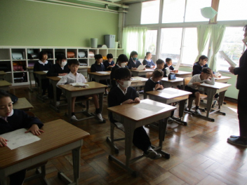 修了式に参加したのは1年生から5年生までです。5年生が最上級生として式に臨みましたが、背中がかっこいい!背筋がぴっと伸びています。気持ちが入っています。今日の午後、6年生のために卒業式の準備をしてくれますが、きっと自分から進んで行動してくれることでしょう。
