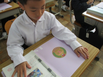 •  2年生が生活科「あしたへジャンプ」の学習で、成長を振り返るアルバムを作りました。今日は完成したアルバムを、友達と見せ合い、友達の頑張りを認め、感想を書く活動をしました。みんな、友達の書いた文章を真剣に読んでいます。また、友達がどんなことを頑張っていたのかを知り、ほめるコメントをたくさん書きました。もらったコメントに、にっこり!うれしい時間ですね。