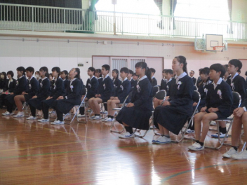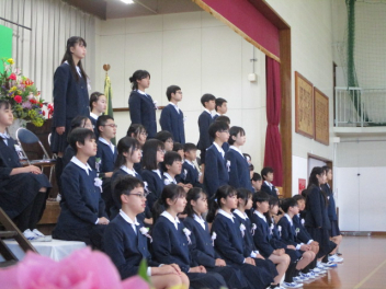 校長式辞では、「粘り強く挑戦」したことについての話がありました。また、各学年でどんな実が実ったか紹介がありました。