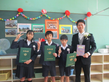 令和7年度の卒業式が挙行されました。天候にも恵まれ、温かな日差しの中、44名の子供たちが新原小から巣立ちました。卒業証書授与では、一人一人が立派な態度で証書をいただきました。「旅立ちの言葉」はこれまでの6年間を振り返り、自分たちが様々な人たちの支えや仲間の存在によって成長できたこと、家族への感謝などを伝えました。式歌「栄光の架け橋」は圧巻の歌声で、会場中が感動でいっぱいになりました。保護者も来賓の皆様も(もちろん職員も)、涙、涙の卒業式になりました。