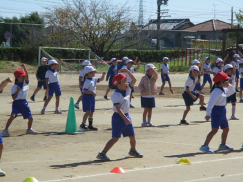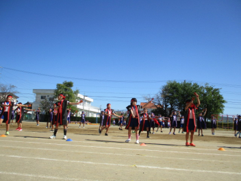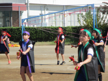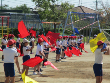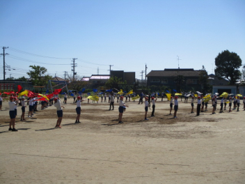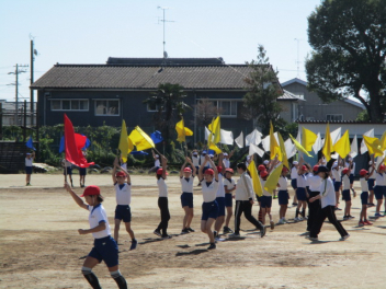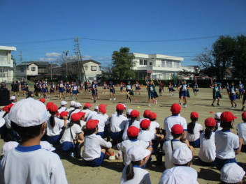 •  今日は全校で大玉ころがしの練習をしました。始めに運営委員会の6年生が口上を述べ、みんなで応援歌を歌いました。その後、2回競技を行いました。1回目は白、2回目は赤が勝ちました。本番はどちらが勝つのか楽しみです。