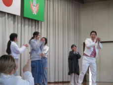 それぞれの学級で、今年1年の成長が分かるような授業が公開されました。生活科の発表をしているクラス。算数でじっくりと考えたり、友達と話し合ったりしているクラス。音楽で学習した成果を発表しているクラス。家庭科でお茶の淹れ方を学習しているクラスもありました。