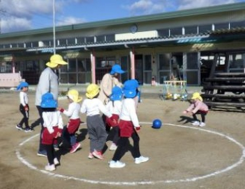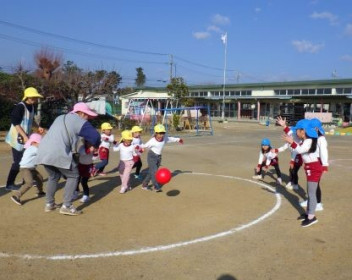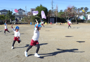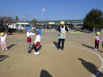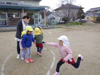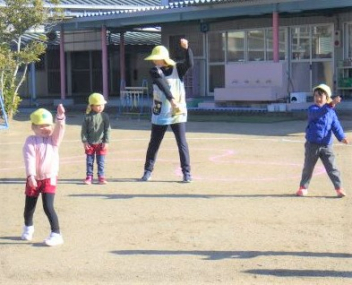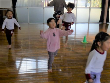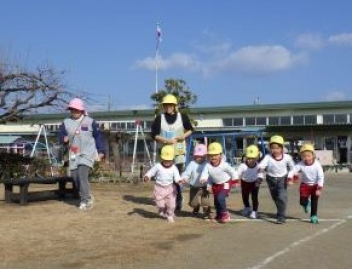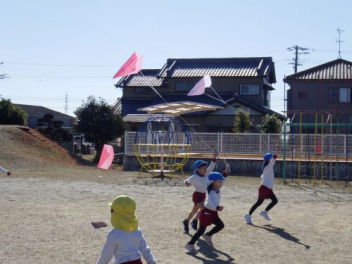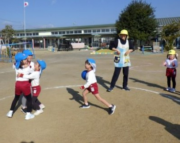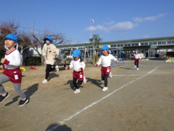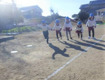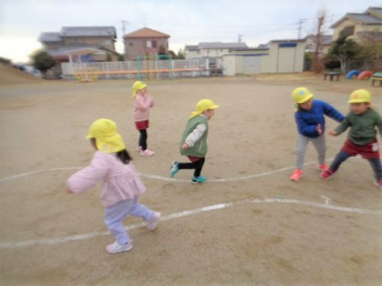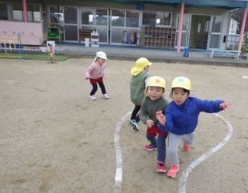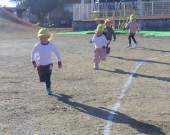 園庭を走るよ「ヨーイドン」