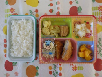 3学期最初のお弁当…今日のランチ♫はカツやカリフラワーがいいね~