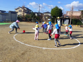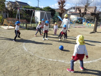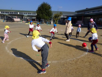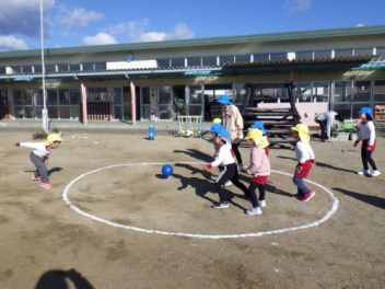 今日はクラス対抗で転がしドッジだよ