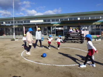 全員で転がしドッジボール