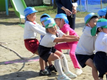 4園の年長児が宮口幼稚園に集まり一緒に楽しい時間を過ごしました。