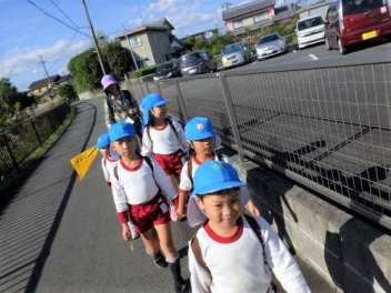 園の隣のサツマイモの畑へ一足先にやってきたあじさい組