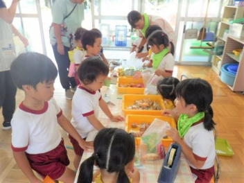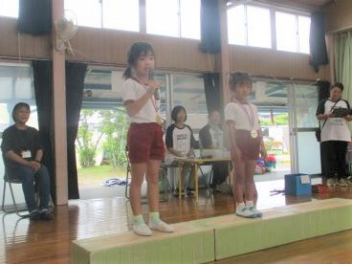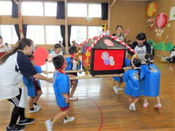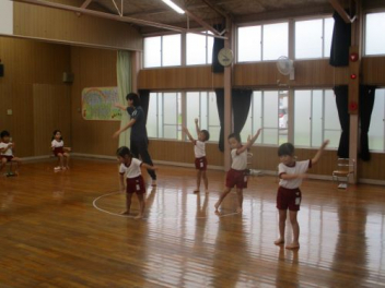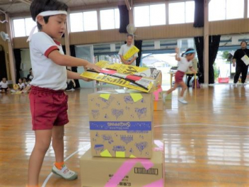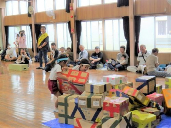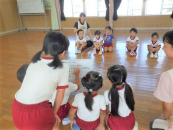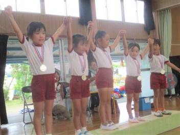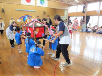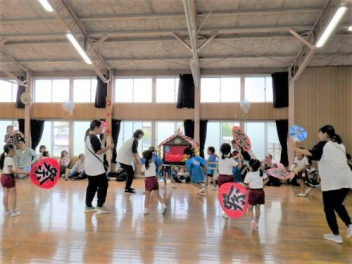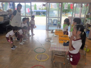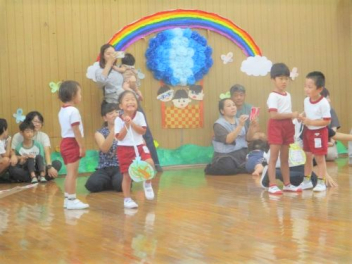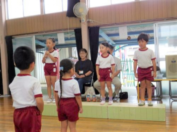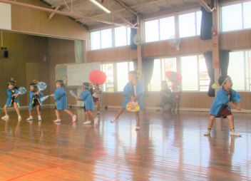 雨模様の天候でしたが、今年度の運動会を開催。戸外で子供たちの力が発揮できる種目は雨間をみて実施することができ、その後場所を遊戯室に移し、プログラムをすべてやり切ることができました。これも、開始時刻、開始方法、開催場所等急な変更にも快く対応していただいたお陰と、地域や保護者の方に感謝しています。見る人も競技する人も一緒に楽しい時間を過ごすことができました。PTA役員の3人の方には、用具準備から片付けまで協力していただき大変ありがたかったです。思い出に残る運動会となりました、本当にありがとうございました。