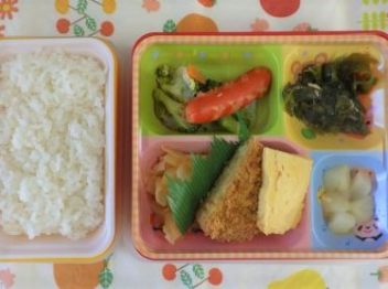 今日のランチ♫ ワカメもコロッケもおいしいね