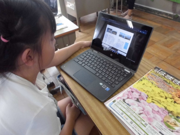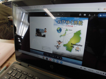個別の調べ学習が始まります。「のびゆく浜松」も、子供たちのタブレット型端末からも閲覧、利用ができます。