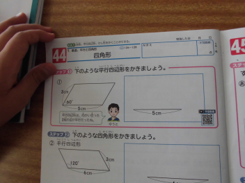 新津小の4年生は、算数の学習も頑張っています。「四角形」の学習です。