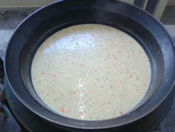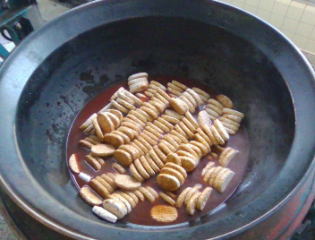 「たけのこ」はアクが強く、えぐみという苦みがあります。給食室では、前日に米ぬかと一緒に「たけのこ」を茹でてアク抜きをしましたlaugh