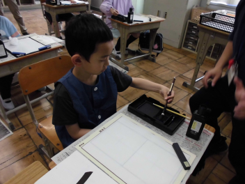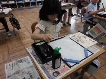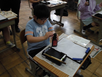 • 3年生の待ちに待った習字の学習が始まりました。準備や片付けの仕方を学びました。そして、筆に墨汁をつけ、縦線や横線を半紙に書きました。初めての習字に子どもたちも嬉しそうに取り組みました。