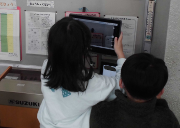 図工「すきまちゃんのすきなすきま」では、すきまちゃんが過ごせるような場所を探し、タブレットで写真を撮る活動をしました。
