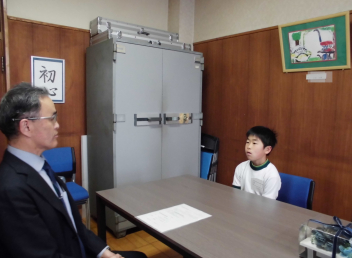 新津小の4年生の子供が、女子チアリーディングの練習に励み、よい成果を収めたことを校長先生に報告しました。