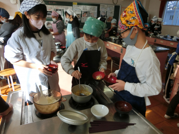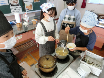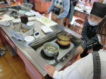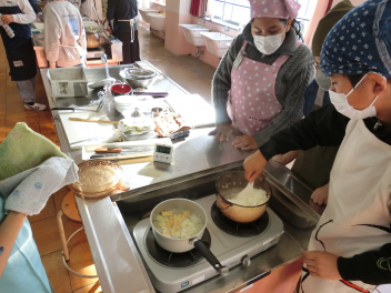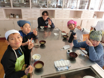 今日は、5年3組がごはんとみそ汁の調理実習を行いました。