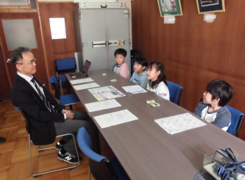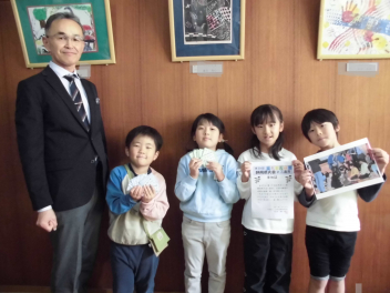 新津小の2年生の子供が、百人一首の練習に励み、よい成果を収めたことを校長先生に報告しました。