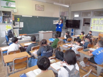 物の位置の伝え方を学習し、学んだことを使って友達同士で交流しました。