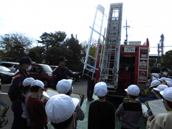 ポンプ車のはしごまで見せてくださいました。子供たちは興味津々で見ていました。