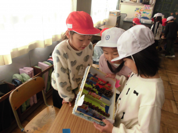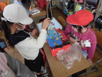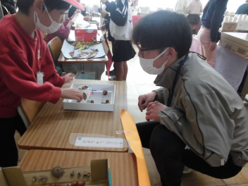 • 12月2日(火)に1年生生活科「たのしいあきいっぱい」の授業で、あきいっぱいランドを開きました。他のクラスへ遊びに行ったり、6年生や先生方に遊びに来てもらったりして、楽しい時間になりました。