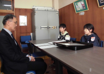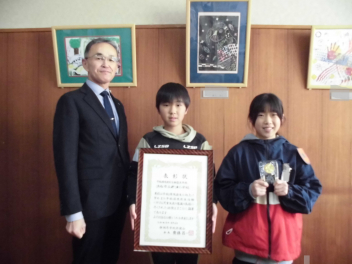 新津小の6年生の子供たちが、学校の環境衛生に励んだことで、新津小が静岡県学校保健会から優良校として表彰されたことを校長先生に報告しました。