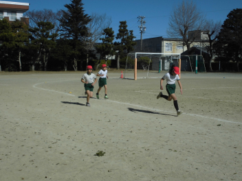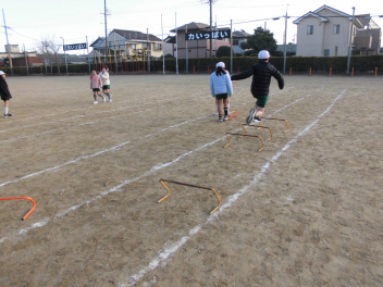 4年生では、体育科「小型ハードル走」の学習で、寒さに負けず活動しました。