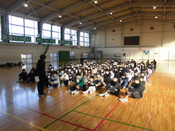 養護教諭の先生から、「朝ご飯」「テレビ・ゲームの時間を守ること」「寝る時刻」「運動」の大切さを教えていただきました。