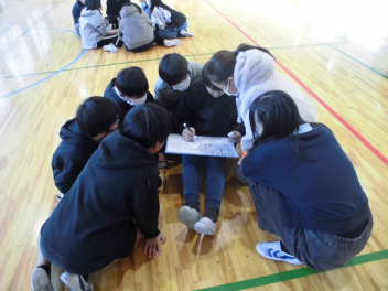 また、ハードルをリズムよく跳ぶためにはどうすればよいかをグループで考えました。