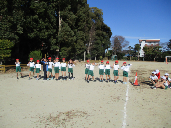 赤チーム、白チームに分かれて、順番に練習しました。次に走るチームは、全力で声援を送りました。