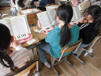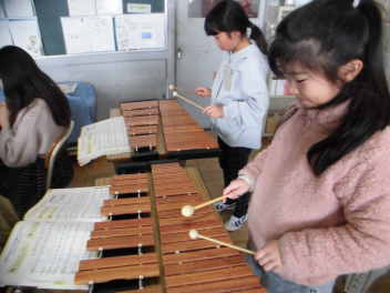 新津小の4年生の子どもたちは、音楽科の学習で木琴や琴、鉄琴など様々な楽器に触れて、音色に親しんでいます。