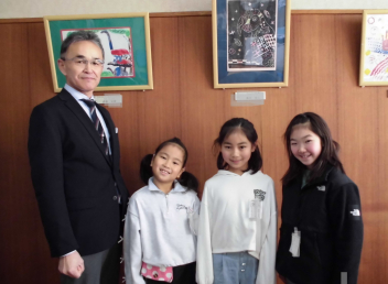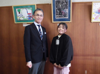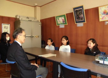 新津小の4年生の子供が、女子チアリーディングの練習に励み、よい成果を収めたことを校長先生に報告しました。