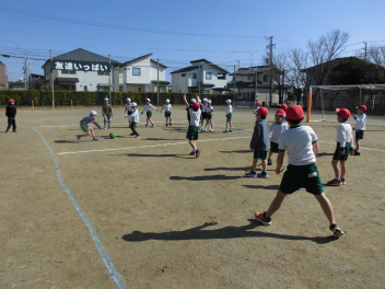 少し暖かくなってきました。2年生は、元気に外でドッジボールをしています。