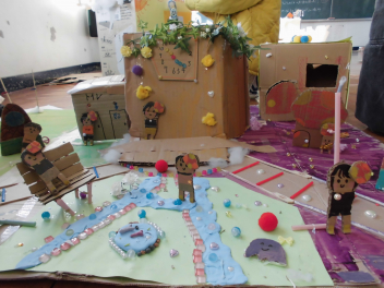 グループごとに完成した街を紹介し合いました。それぞれの工夫があって、驚きの声があがっていました。