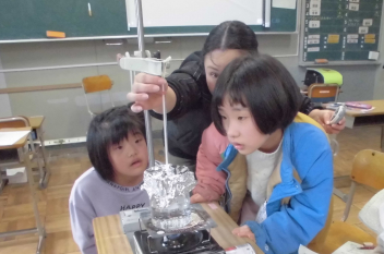 4年生は、水を熱した時の温度の変化を観察し、グラフにまとめました。