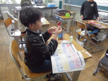 4年生は総合的な学習の時間で、ユニバーサルデザインの商品開発に友達と挑戦しています。