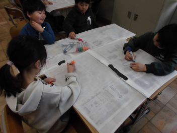 3学期は、「学んだ環境をより多くの人に自分事として捉えてもらいたい」と考え、4年生に向けた活動を企画しました。すごろくや、かるた、漫画など下級生でも親しみやすい方法を自分たちで工夫し、形にしました。