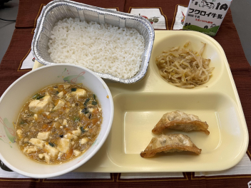 マーボー豆腐は、中国・四川省の料理です。中国では、豆板醤や赤唐辛子などの香辛料を使い、とても辛いのが特徴です 給食では豆板醤と一緒に、浜納豆やみそを使うことで辛みをおさえ、コクのあるマーボー豆腐にしました。